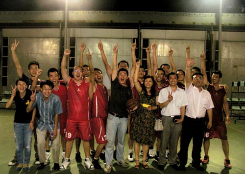 10月17日,在經(jīng)歷了半決賽的波瀾不驚之后,上屆參加決賽的兩支隊(duì)伍又在決賽中會(huì)師,衛(wèi)冕冠軍房建二分公司和上屆亞軍海川集團(tuán)聯(lián)手為觀眾們奉獻(xiàn)了一場(chǎng)經(jīng)典的比賽。房建二分公司中冠軍隊(duì)的成員基本都在,人員變化不大;海川集團(tuán)陣容變化很大,幾名參加過(guò)上屆比賽的老隊(duì)員退出,幾名年輕隊(duì)員的加盟讓他們充滿(mǎn)朝氣和活力,這在比賽初期發(fā)揮了重要作用。海川集團(tuán)憑借著速度上的優(yōu)勢(shì)迅速取得領(lǐng)先,分差最大時(shí)超過(guò)了11分。然而,經(jīng)驗(yàn)上的不足讓他們?cè)诒荣惡蟀攵纬员M了苦頭,房建二分公司依靠出色的配合在第三節(jié)成功將比分追平。直至第四節(jié)的最后兩分鐘,海川集團(tuán)僅依靠幾次罰球保持著微弱的領(lǐng)先。不期而至的小雨使場(chǎng)上的形勢(shì)突然間發(fā)生了逆轉(zhuǎn),追趕勢(shì)頭很猛的房建二分公司似乎一下子集體走神,連續(xù)的兩個(gè)失誤讓對(duì)手抓住機(jī)會(huì)打快攻并連得五分。最后的一分鐘,海川集團(tuán)領(lǐng)先了七分,比賽已經(jīng)失去了懸念。最終,海川集團(tuán)戰(zhàn)勝了房建二分公司,在時(shí)隔四年后,再次站在了冠軍領(lǐng)獎(jiǎng)臺(tái)上。